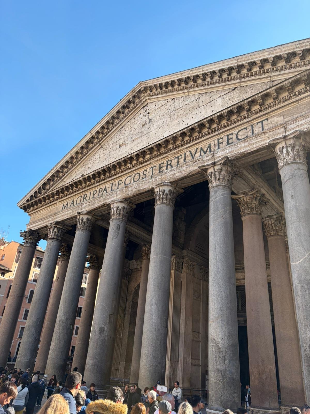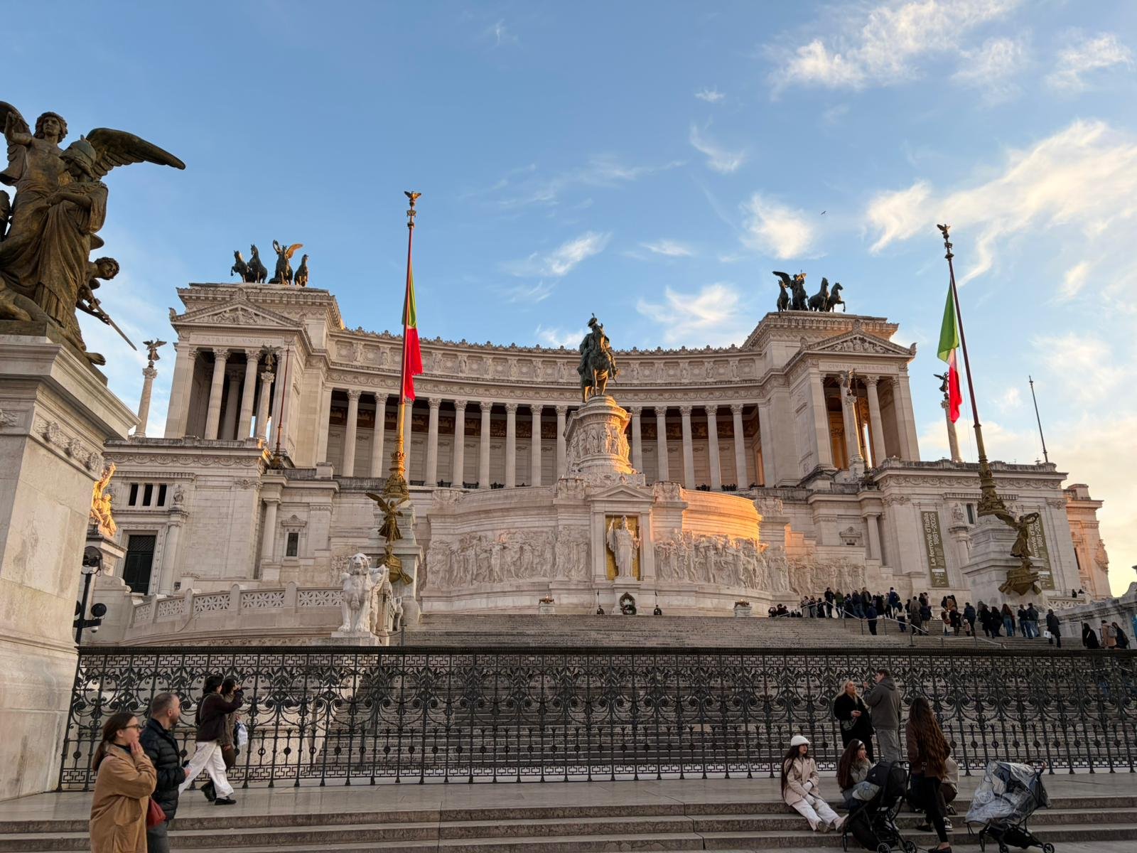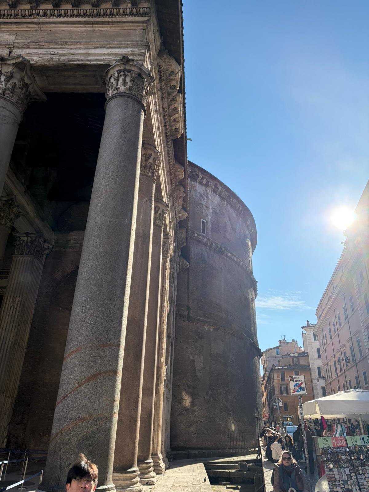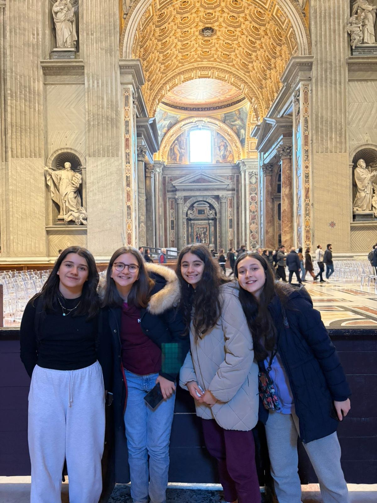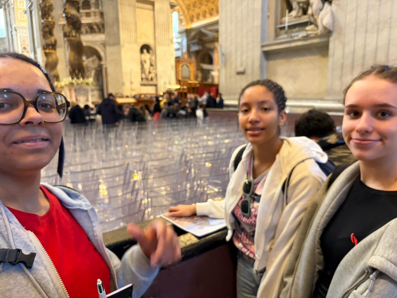 À peine arrivés, nous avons découvert la majestueuse Place Saint-Pierre dans la lumière matinale. Dessinée par le Bernin au XVIIe siècle, cette immense colonnade embrasse les fidèles du monde entier : deux rangées de colonnes qui, vues depuis le centre, forment un alignement parfait — une illusion d'optique voulue par l'architecte.
