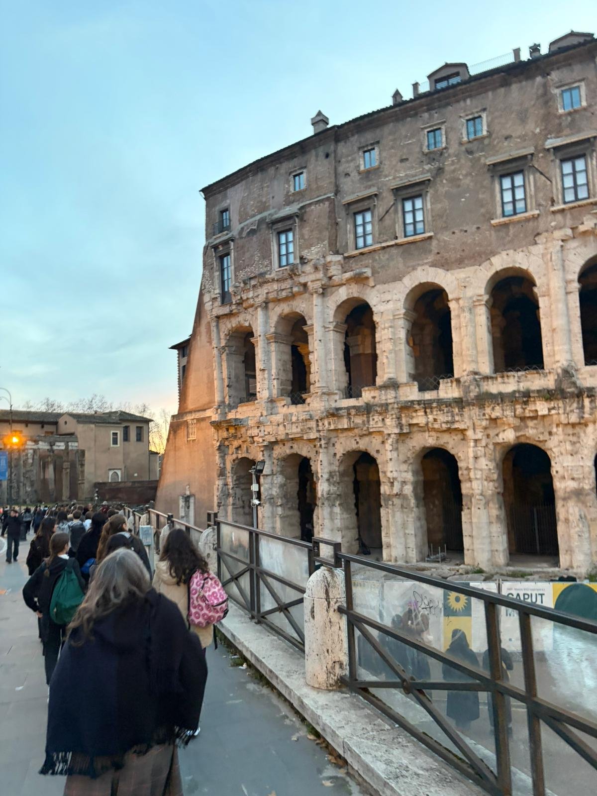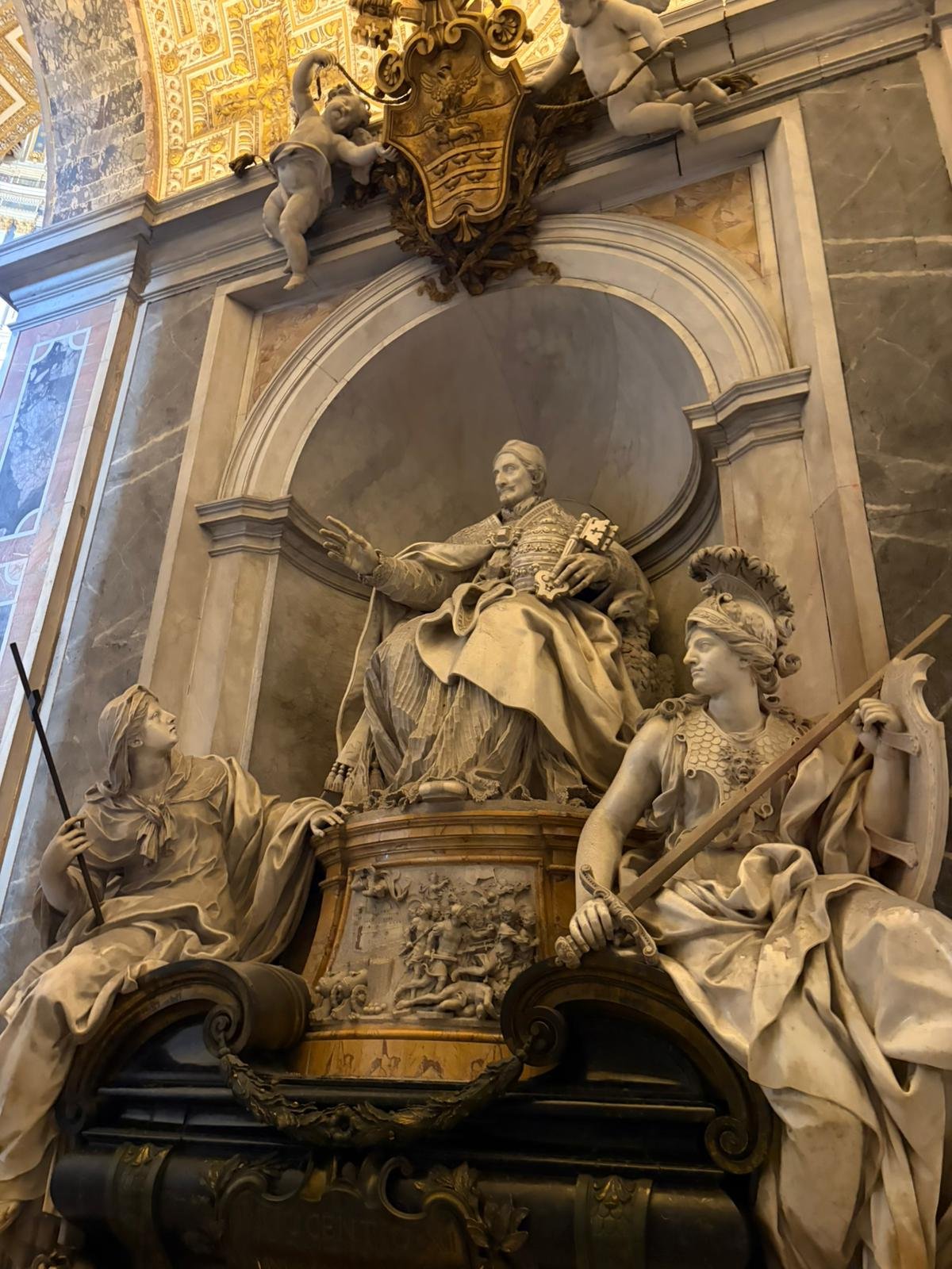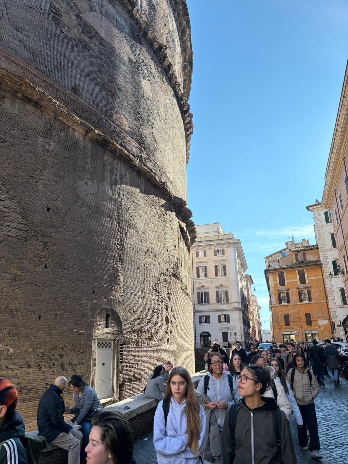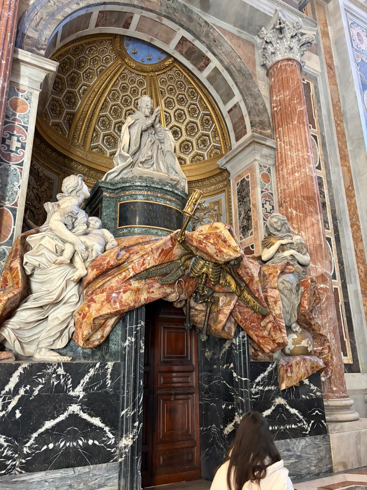 À peine arrivés, nous avons découvert la majestueuse Place Saint-Pierre dans la lumière matinale. Dessinée par le Bernin au XVIIe siècle, cette immense colonnade embrasse les fidèles du monde entier : deux rangées de colonnes qui, vues depuis le centre, forment un alignement parfait — une illusion d'optique voulue par l'architecte.