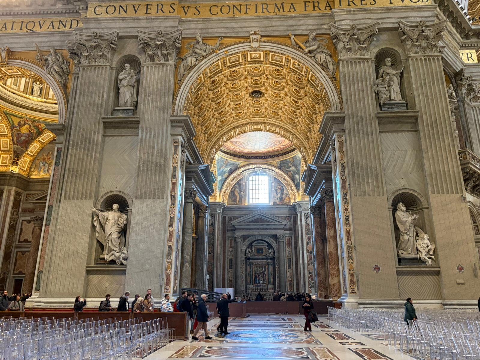 La Basilique dépasse tout ce que l'on peut imaginer : 189 mètres de longueur, la coupole de Michel-Ange dominant les toits de Rome, et à l'intérieur la Pietà dont la douceur des visages laisse sans voix. Michel-Ange n'avait que 24 ans.