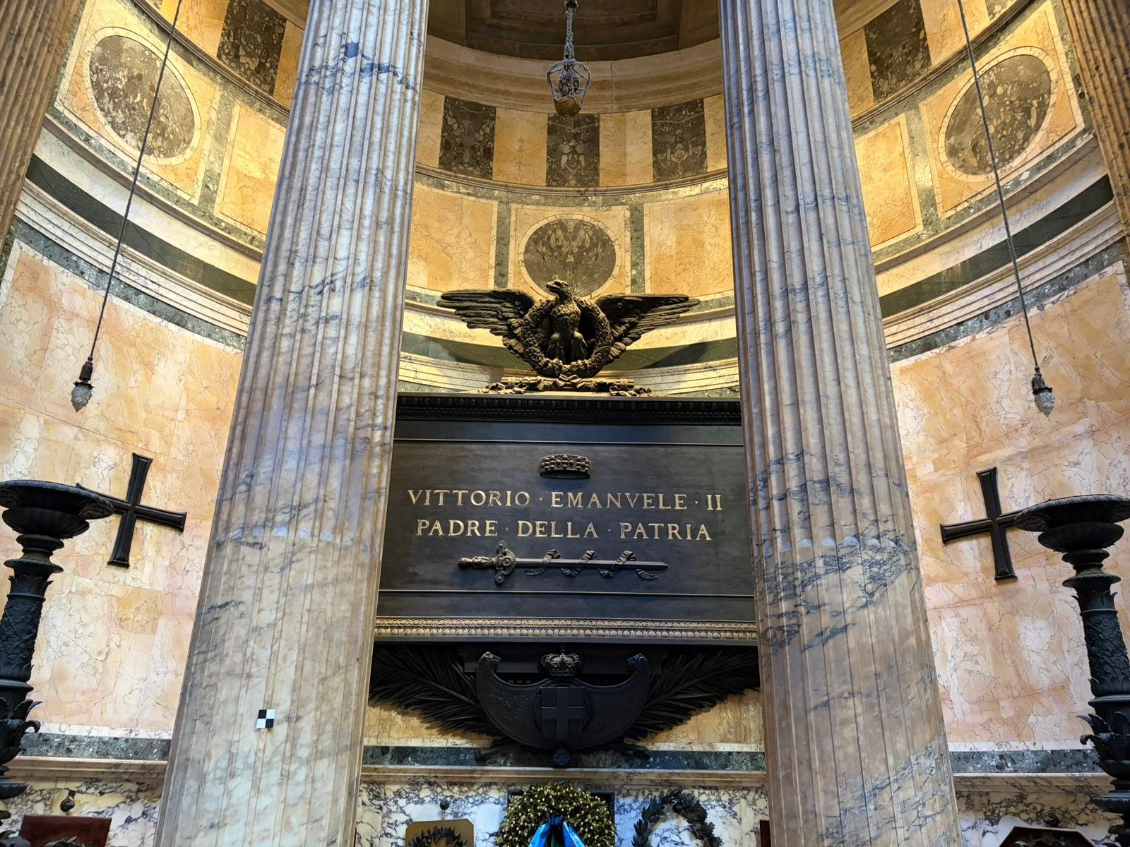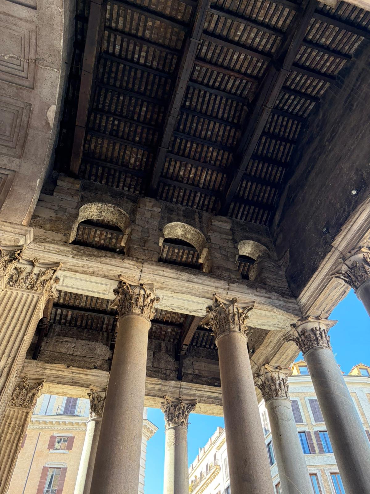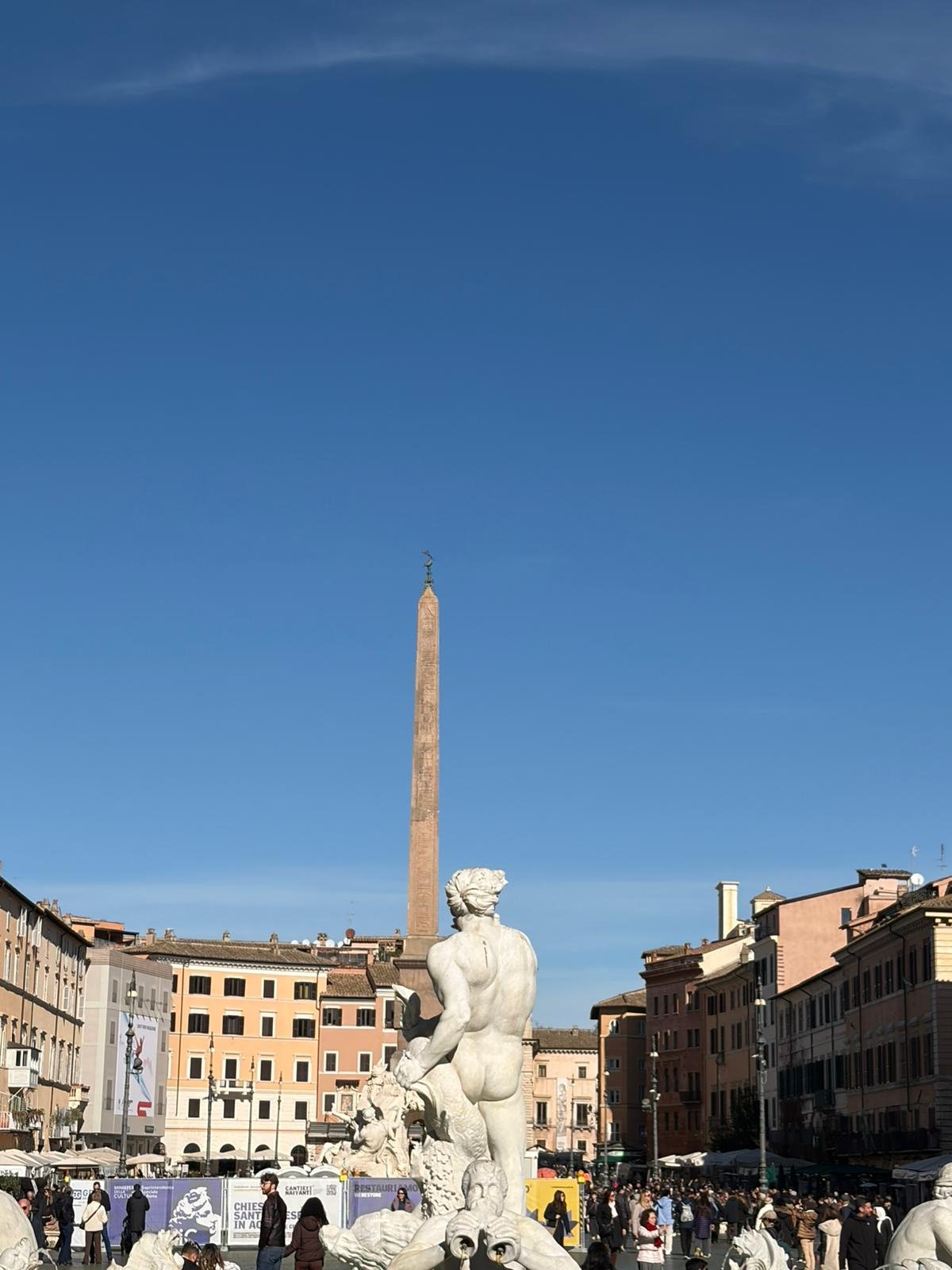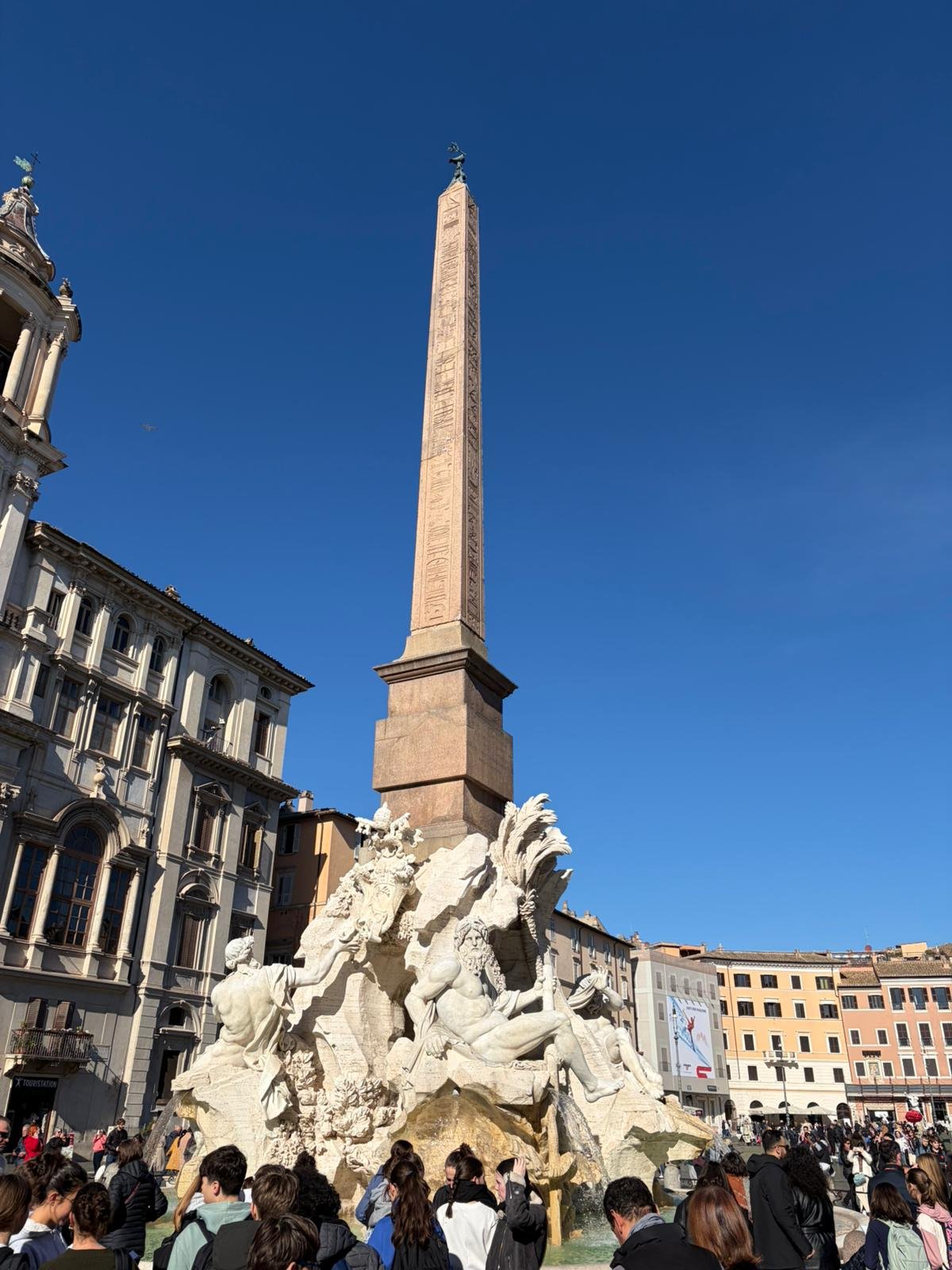 Deux pas plus loin, le Panthéon intimide par son dôme intact depuis l'an 125 après J.-C. L'oculus de 9 mètres de diamètre laisse entrer la pluie et la lumière à la fois — et pourtant l'édifice tient depuis près de vingt siècles, sans armature métallique. La Place Navone, construite sur les ruines d'un stade romain, nous a offert une pause autour de la Fontaine des Quatre-Fleuves.