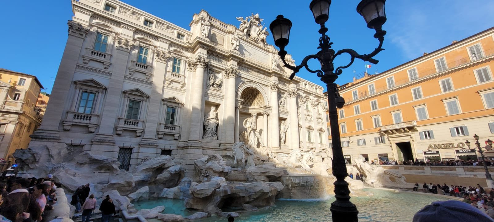 L'après-midi nous a plongés au cœur de la Rome baroque. La Fontaine de Trévi — payante depuis le 1er février 2026 — mérite amplement son entrée : sculptée dans un ancien mur de palais, Neptune trône entre ses chevaux marins dans un fracas d'eau qui résonne sur les pavés.