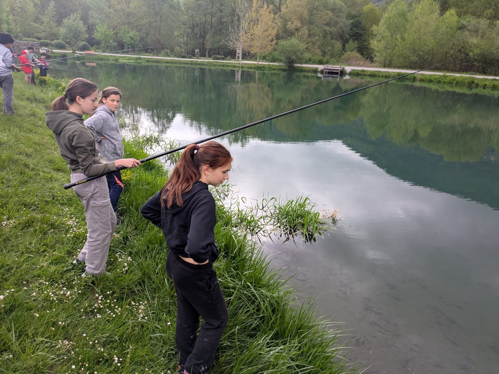 Un premier groupe a participé à une initiation à la pêche à la truite, encadrée par un moniteur à la base de loisirs d’Agos. Les élèves ont pu découvrir les bases de la pêche dans une ambiance calme et agréable.