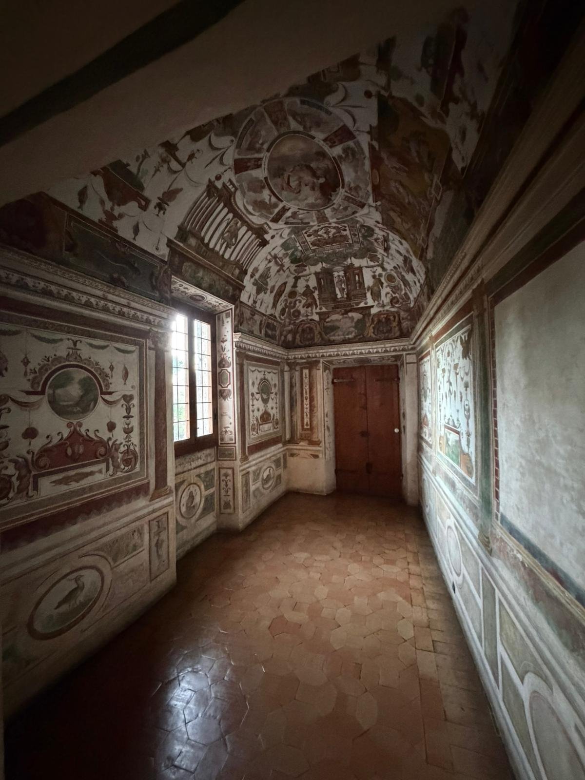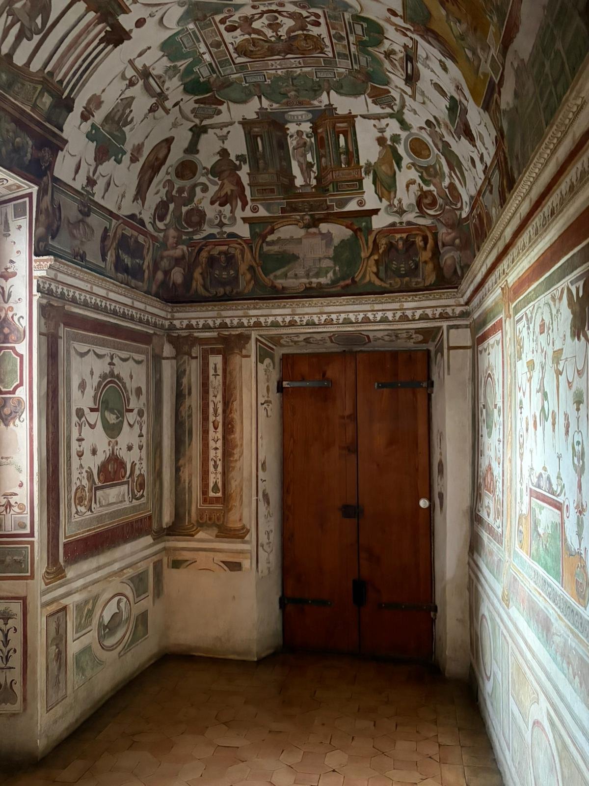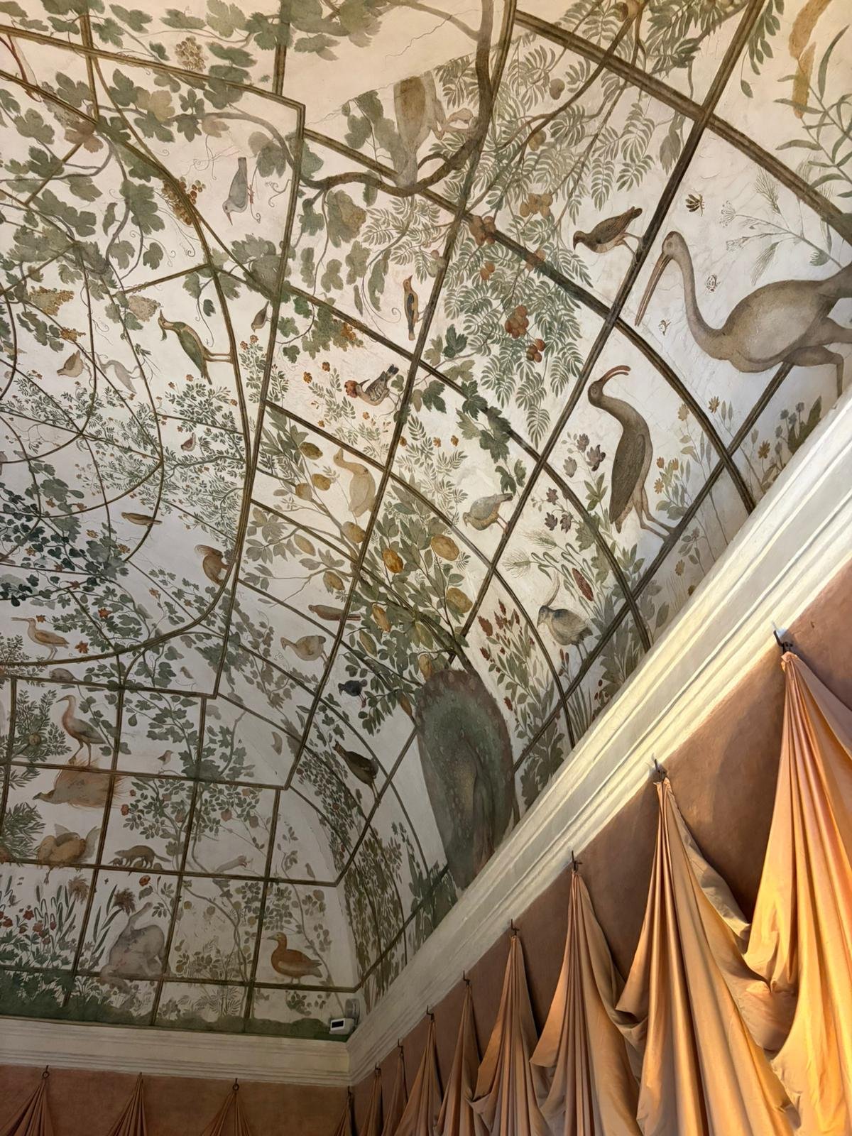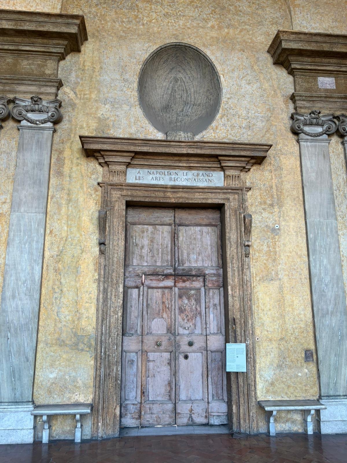 Notre guide nous a conduits à travers les jardins à la française plantés de cèdres centenaires, puis dans les salles décorées de moulages antiques. La façade intérieure, couverte de bas-reliefs enchâssés dans le crépi, est l'une des plus étranges et belles surfaces architecturales de Rome.