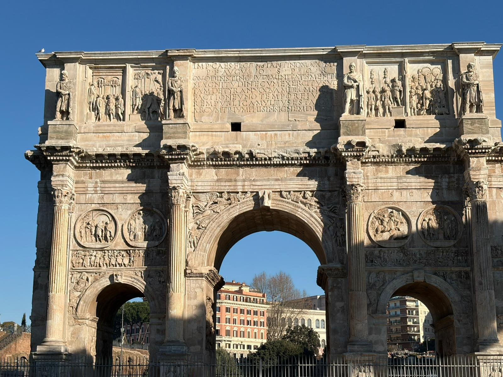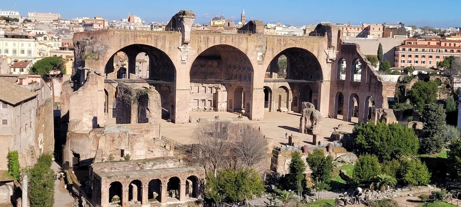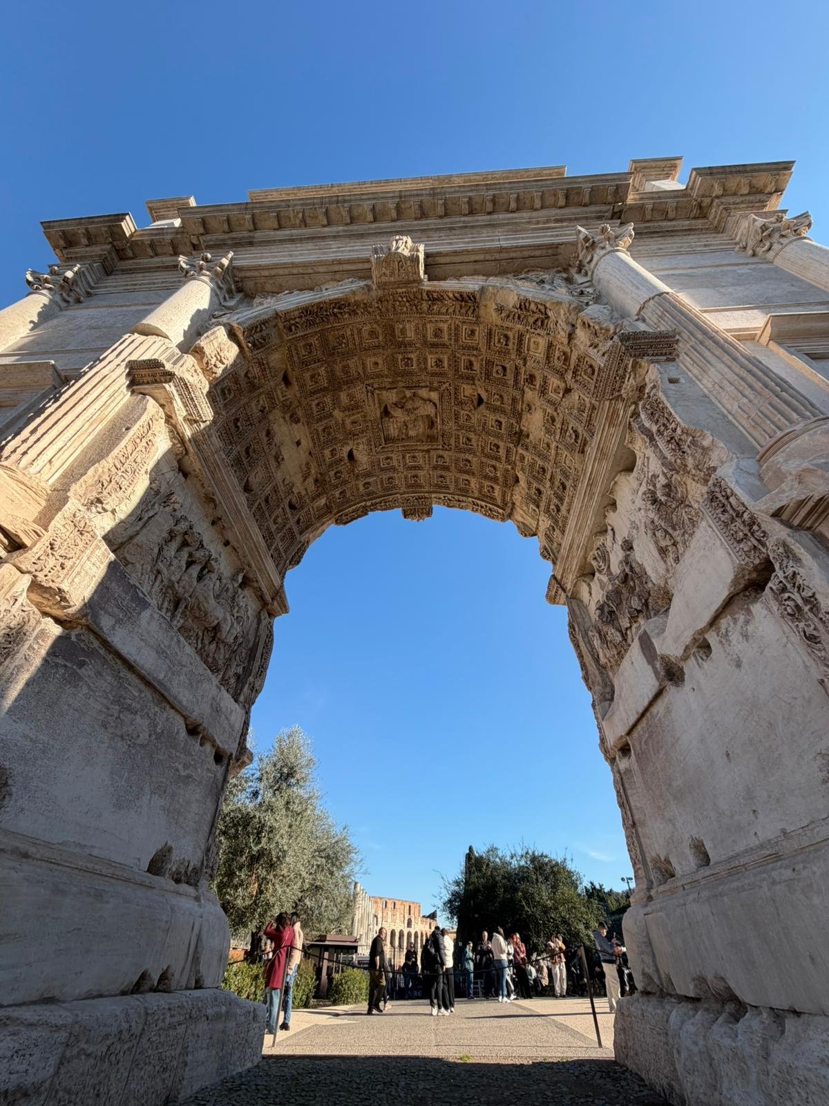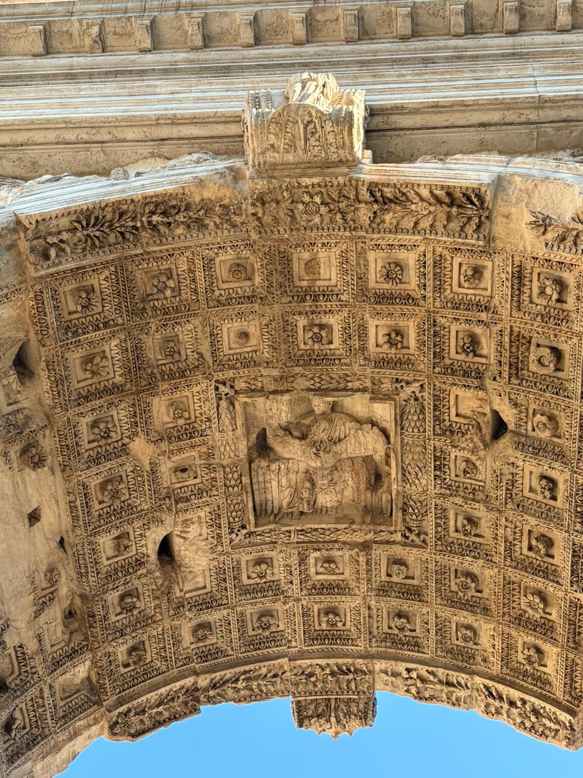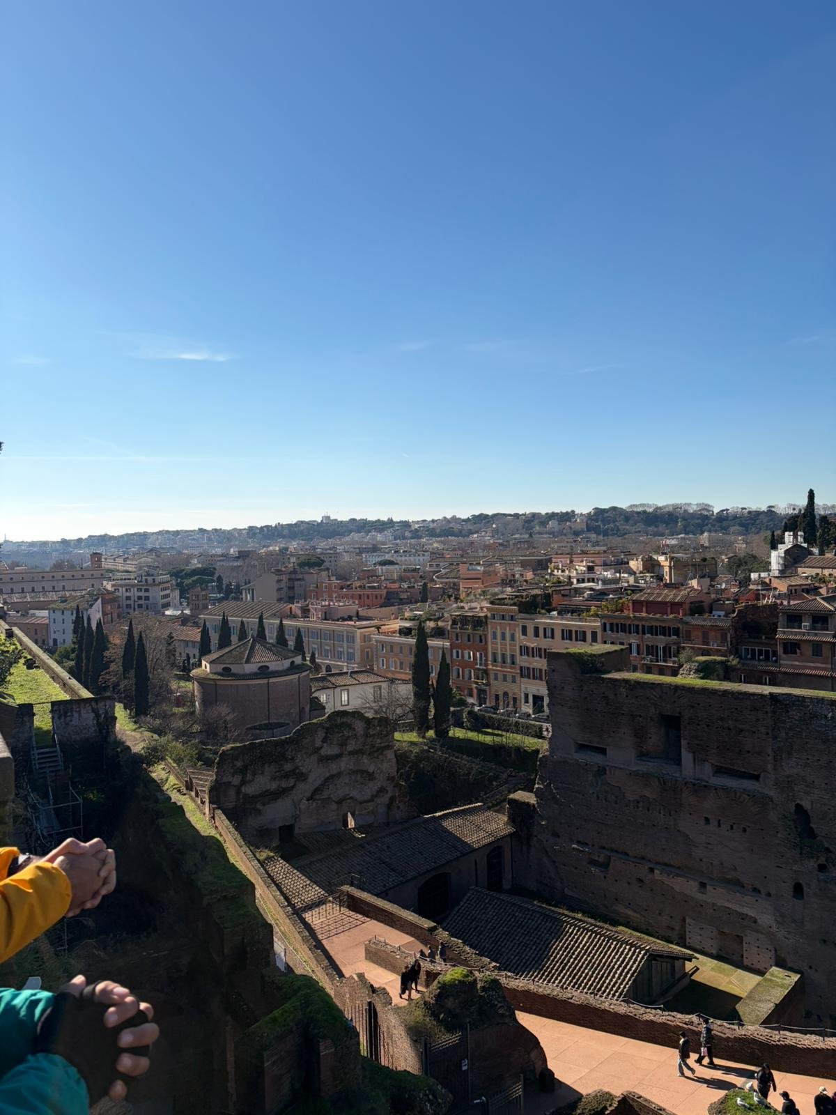 À quelques mètres, le Forum Romain s'étend comme une carte postale de l'Antiquité : les colonnes du temple de Saturne, l'arc de Titus, la tribune des Rostrums depuis laquelle Cicéron prononçait ses discours. C'est ici que Rome a inventé la politique, le droit et l'urbanisme.