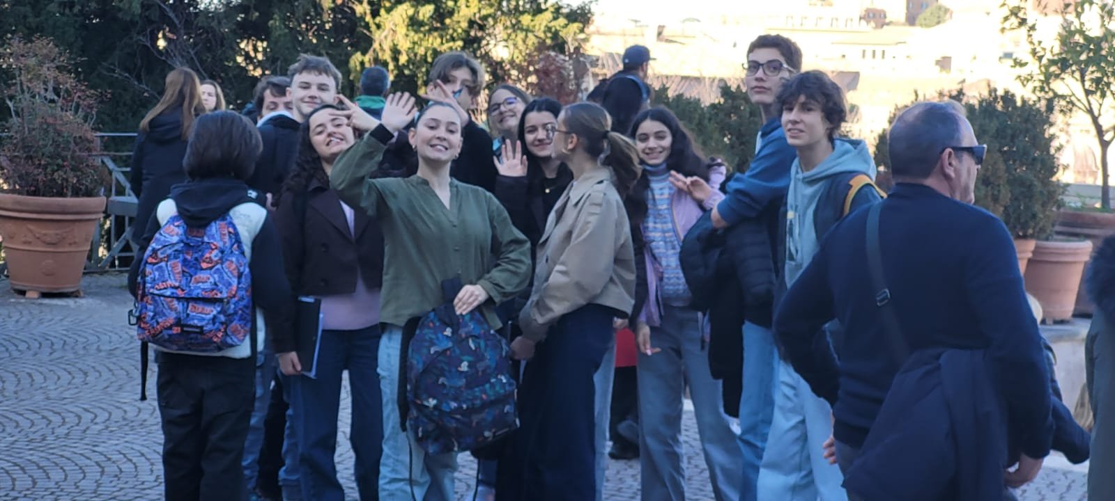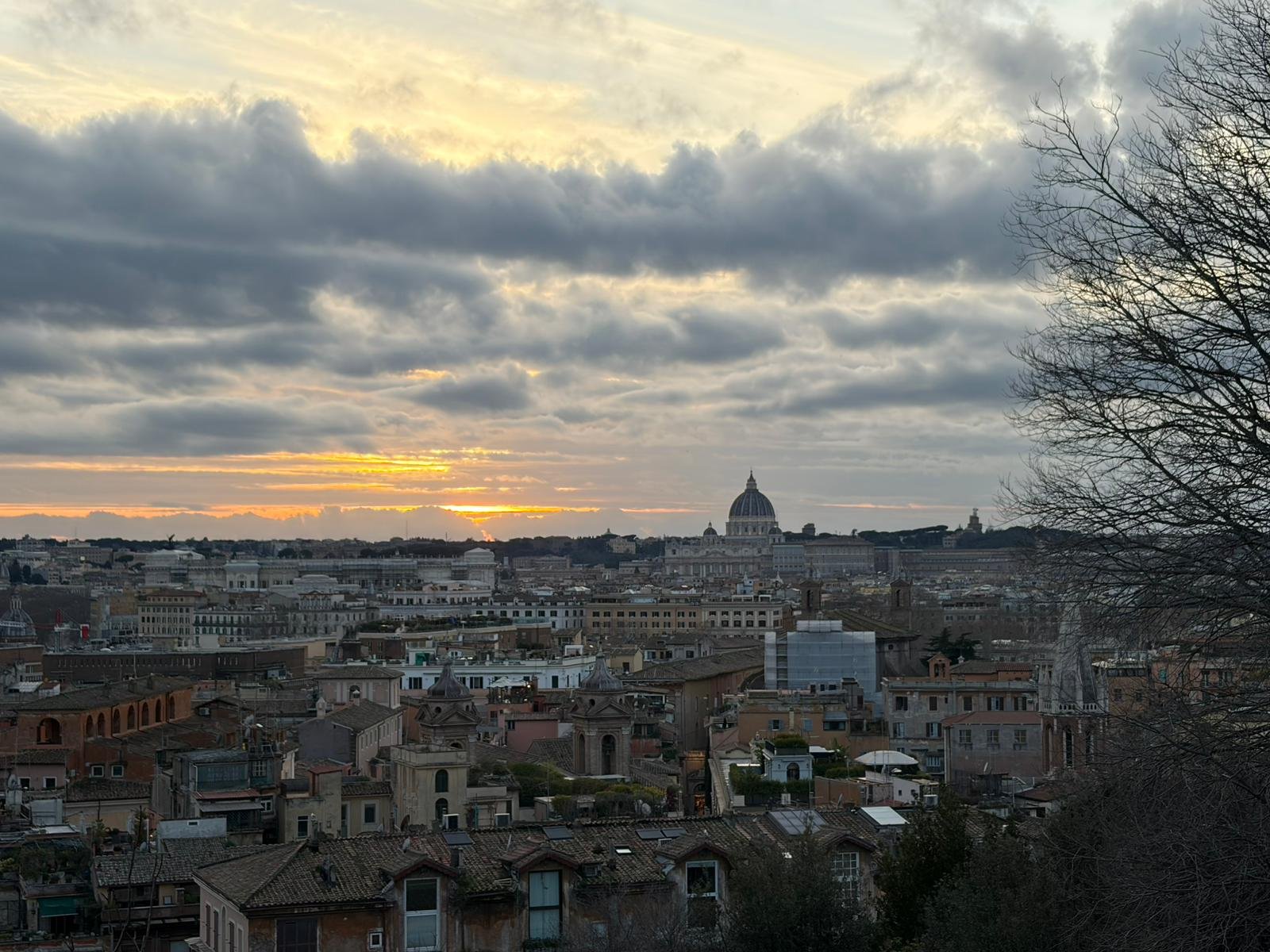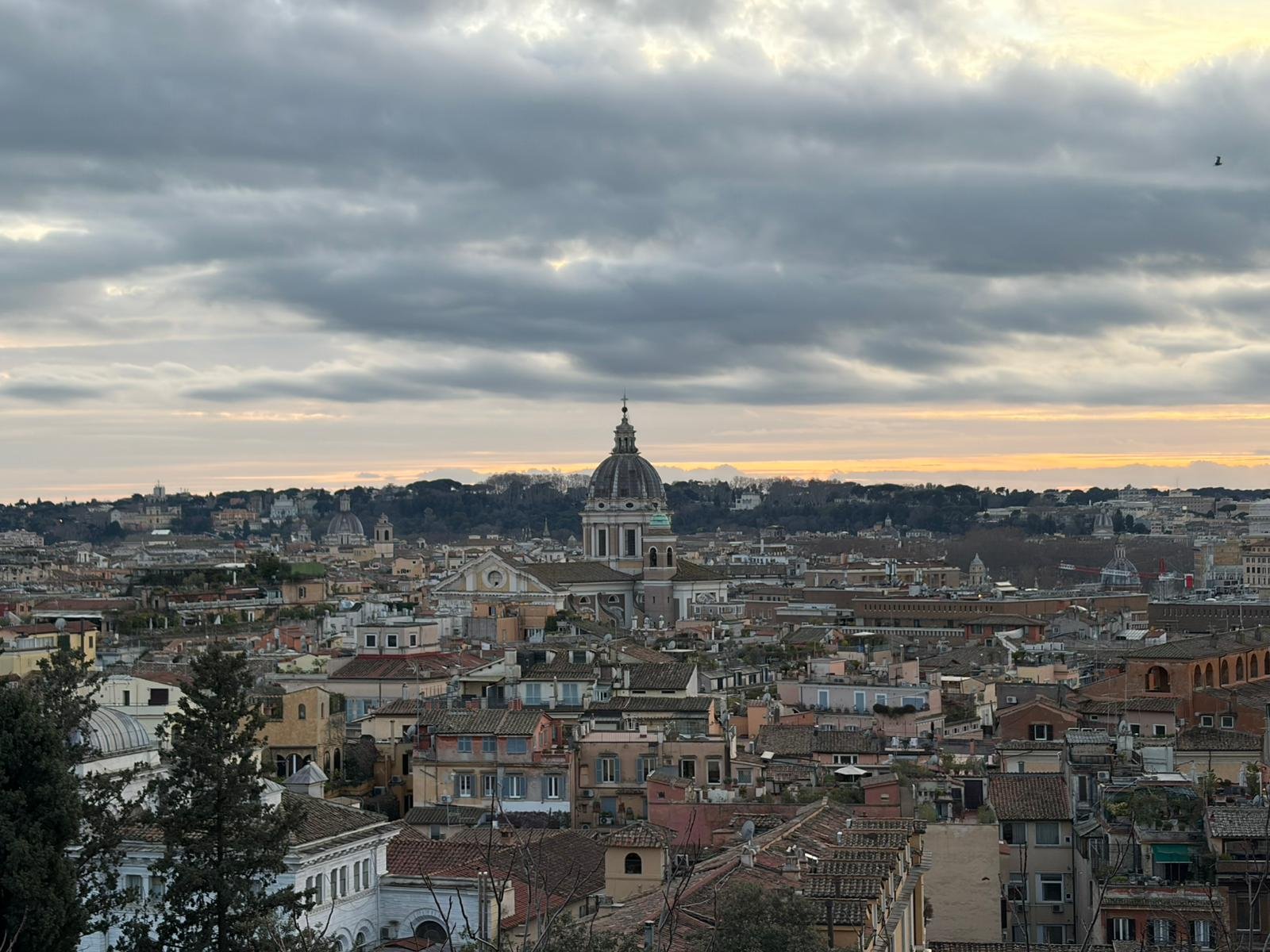 Du haut de la terrasse, la vue sur les toits de Rome — dômes, clochers, terrasses fleuries — offre l'un des panoramas les plus mémorables de la ville. On distingue le dôme de Saint-Pierre, le Panthéon, le Vittoriano blanc : toute l'histoire en un seul regard.