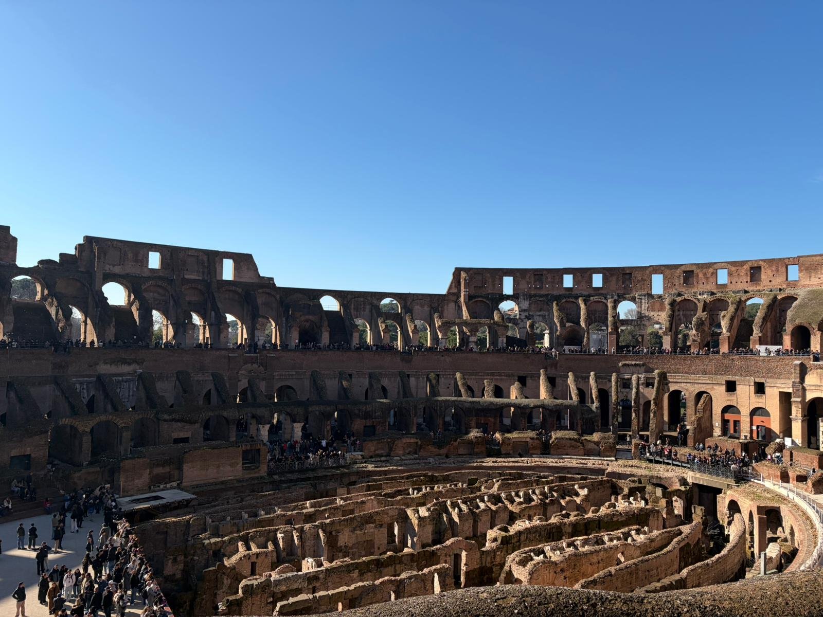 Le Colisée se dresse au détour d'une rue et son apparition coupe le souffle : 50 000 spectateurs, quatre-vingt arches superposées sur quatre niveaux, un amphithéâtre qui a vu se jouer des milliers de combats de gladiateurs entre 80 et 404 après J.-C. À l'intérieur, on devine encore les couloirs souterrains par lesquels bêtes sauvages et combattants montaient dans l'arène.