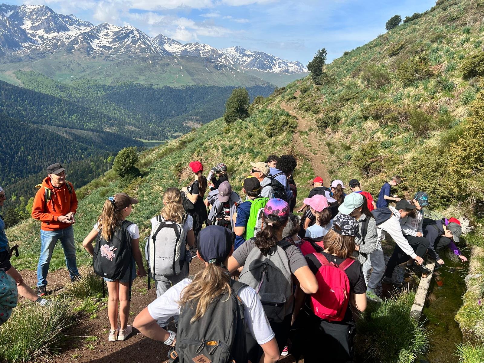 Après une bonne nuit de repos, les élèves ont entamé cette deuxième journée avec enthousiasme. Entre randonnée au col d’Aspin, atelier pédagogique sur l’eau et visite de Saint-Lary, la journée a été riche, active et pleine de découvertes.