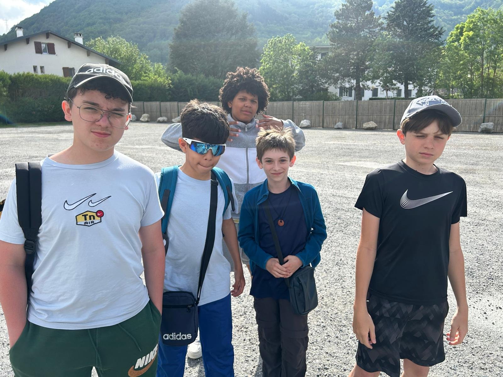 Quelques vidéos prises pendant la descente : des moments spontanés, joyeux et très nature, avec les élèves qui roulent ou courent sur la pente pour rejoindre le groupe et le bus.